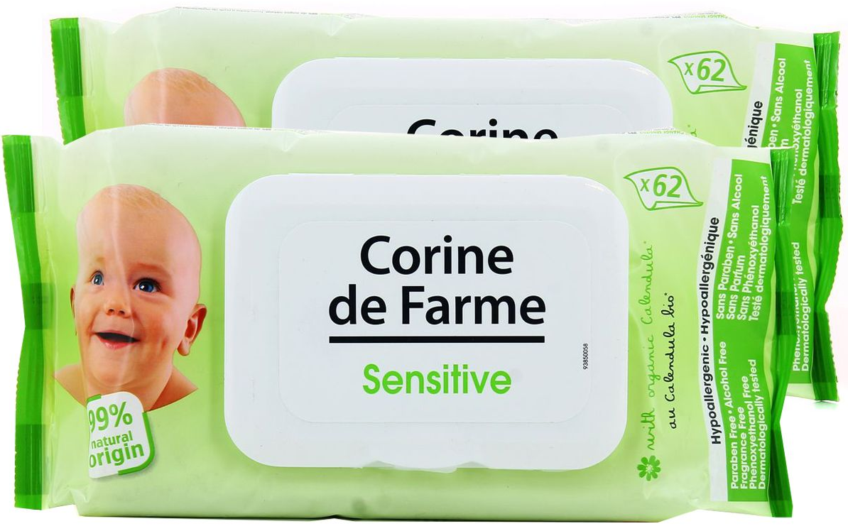 62 منديل مبلّل للبشرة الحساسة من كورين دي فارمي (1 تم شراء 1 مجانًا)