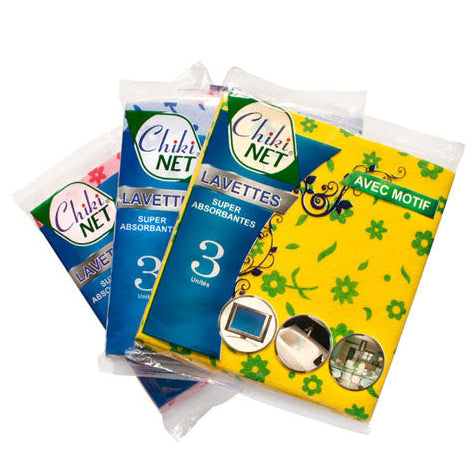مجموعة من 3 مناشف تنظيف شيكينيت بألوان مطبوعة، مقاس مناسب 37×40 سم. مثالية للتنظيف اليومي للمطبخ والحمام، هذه المناشف الماصة والمتينة تجعل جميع أعمالك المنزلية أسهل. توصيل سريع في جميع أنحاء المغرب مع MyMarket.ma. جودة موثوقة بسعر مناسب لمنزل نظيف دائمًا.