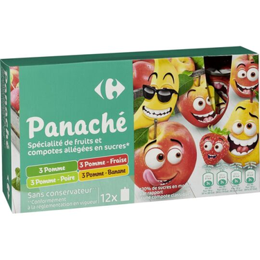 تشكيلة لذيذة مكونة من: 3 كومبوت تفاح، 3 كومبوت تفاح-فراولة، 3 كومبوت تفاح-كمثرى وأخيراً 3 كومبوت تفاح-موز