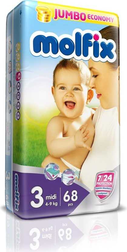 حفاضات بيبي كومفورت 68 قطعة T3 4-9 كجم مولفيكس