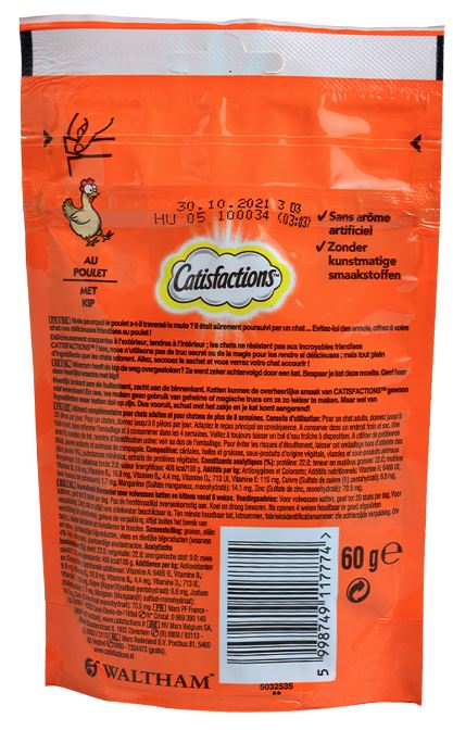 طعام تكميلي للقطط البالغة والقطط التي يزيد عمرها عن 8 أسابيع. حلوى لذيذة مقرمشة من الخارج وطرية من الداخل، ستفعل القطط أي شيء من أجلها.
