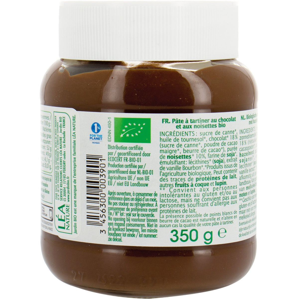 المكونات: سكر القصب*، زيت عباد الشمس*، الشوكولاتة* 18% (سكر القصب*، مسحوق الكاكاو قليل الدسم*، زبدة الكاكاو*)، هريس البندق* 10%، دقيق الصويا*، مستحلب: الليسيثين* (صويا)، بوربون خلاصة الفانيليا*. *منتجات الزراعة العضوية. قد يحتوي على آثار من بروتينات الحليب والمكسرات الأخرى والترمس. المكونات: ريتسويكر*، زونيبلومولي*، شوكولاتة* 18% (ريتسويكر*، مسحوق كاكاو*، كاكاوبوتير*)، معكرونة بالبندق* 10%، صوياميل*، مستحلب: ليسيثينين* (صويا)، مستخلص فانيليا بوربون*. *المكونات تعتمد على المكونات البيولوجية. يمكن العثور على الجراثيم في الأوراق الذائبة، وهي ليست مصنوعة من الترمس.