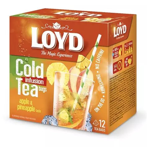 شاي لويد المثلج بالتفاح والأناناس، في ١٢ كيس شاي هرمي الشكل، وزن كل كيس ٣٠ غرام، يُقدم تجربة منعشة بنكهة الفواكه. سهل التحضير، يجمع هذا الشاي بين حلاوة التفاح ونضارة الأناناس ليُقدم مشروبًا خفيفًا يُروي العطش، مثاليًا للأيام المشمسة. استمتع بمشروب متوازن يُنعش حواسك ويُرطب جسمك. مع لويد، استمتع بشاي مثلج لذيذ وطبيعي في أي وقت.