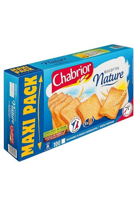 Discover 100 Chabrior plain rusks in a generous 830g pack, perfect for a healthy and delicious breakfast. Palm oil-free, they're made with rapeseed oil, for a more natural and flavorful recipe. Ideal for your moments of pleasure, these crispy rusks bring lightness and quality to your day. With Chabrior, savor every moment from the morning.