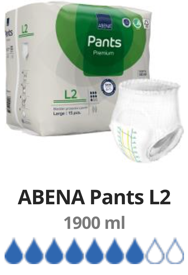 The combination of optimum safety and comfort gives the user greater freedom, greater self-esteem and the ability to help themselves. At the same time, caregivers also save resources because the user can often manage with this product without any help. The Abena Pants Premium series is a complete system with different levels of absorption for all sizes.