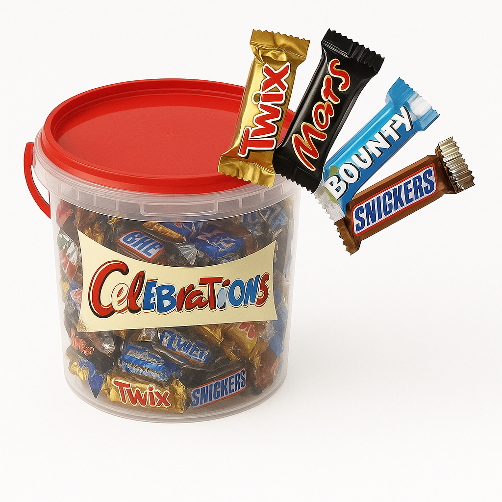 4 Chocolate Variants: Mars, Snickers, Twix and Bounty.