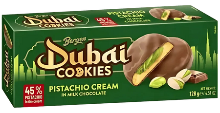 Dubai Style Biscuits – Pistachio & Milk Chocolate Bergen 128g