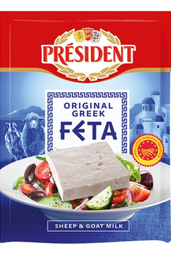 Greek cheese made from a mixture of the president's pasteurized sheep's milk and goat's milk - what ingredients were used for its production: