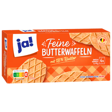 Discover JA! Fine Butter Wafers, crispy and delicious cookies that delight the taste buds with every bite. With their light and airy texture, these wafers offer an authentic taste of quality butter. Perfect to accompany your coffee or tea, they can also be enjoyed as a gourmet snack. The 240g format allows you to enjoy this crispy delight for a long time. Ideal for relaxing moments with family or friends.