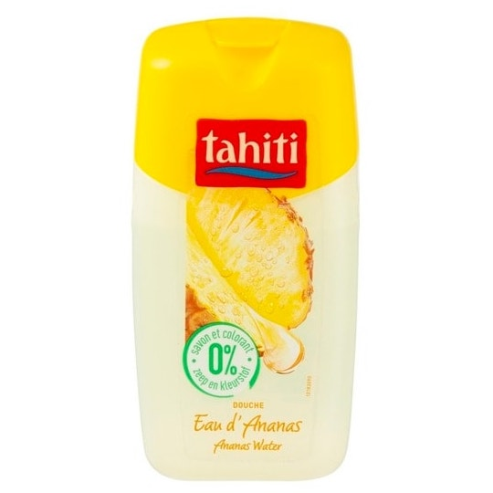 TAHITI Pineapple Water Shower Gel 250ml At the heart of a heavenly nature, fruits are soaked in sunshine and tropical rain. Tahiti Eau d'Ananas shower gel inspired by wild nature. Its formula 0% soap, 0% dye and with neutral pH for the skin gives you a feeling of soft and pleasantly scented skin.