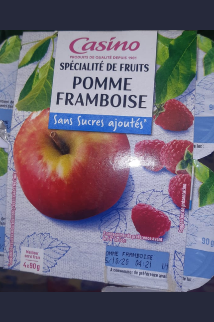 Categories: Plant-based foods and beverages, Plant-based foods, Desserts, Fruits and vegetables based foods, Fruits based foods, Compotes, Apple compotes, Raspberry apple compotes