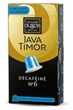 10 Capsules Aluminium Compatibles Nespresso Décaféinées Java Timor Dubois N°6