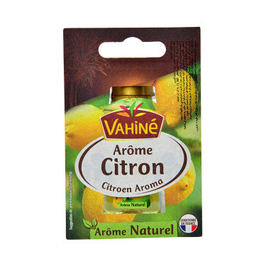 Vahiné a sélectionné cet arôme naturel de citron pour sa qualité et son bon goût. Justement dosé et concentré, il est idéal pour parfumer et renforcer le goût de vos desserts.. Arôme alimentaire non destiné à être ingéré en l'état. A diluer dans votre préparation. Arôme Naturel. Citrons d'Italie. Conditionné  en  France. Bouchon Verseur plus pratique À base d’huiles essentielles de citron