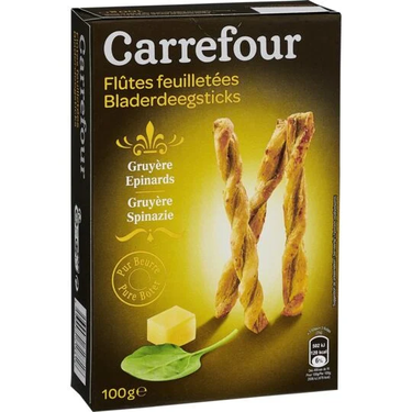 Biscuits Bâtonnets Salés Snack au Gruyère et Épinards Carrefour 100 g