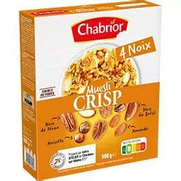 Savourez le parfait équilibre entre croustillant et nutrition avec les Céréales Muesli Crisp aux 4 Noix Chabrior. Riches en quatre variétés de noix sélectionnées, elles offrent une source naturelle d'énergie et de fibres pour bien commencer la journée. Leur texture croquante et leur goût authentique apportent plaisir et vitalité à chaque bol. Idéales pour un petit-déjeuner sain et gourmand, ces céréales de 500g sont un véritable allié pour votre bien-être au quotidien.