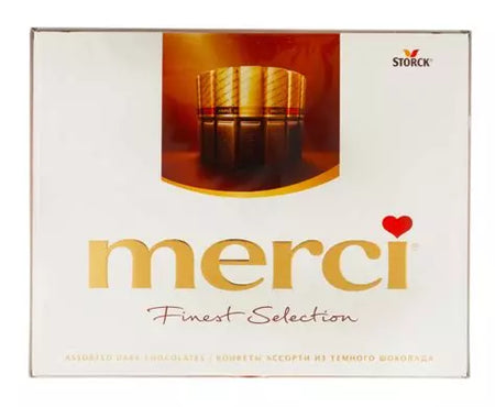 Découvrez l'excellence du chocolat noir avec Merci Finest Selection. Ce coffret de 250g réunit une sélection raffinée de chocolats noirs premium, soigneusement élaborés pour les véritables connaisseurs. Chaque pièce offre une expérience gustative intense et sophistiquée, avec des notes riches et complexes qui ravissent le palais. Parfait pour vos moments de détente ou en cadeau d'exception, ce chocolat noir combine qualité supérieure et plaisir authentique. Laissez-vous séduire par la pureté et l'intensité d'un véritable chocolat noir de prestige.