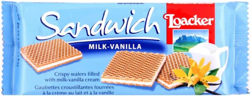 Gaufrettes Croustillantes Fourrés à la Crème Vanille Loacker Sandwich 75g