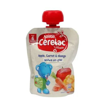 Gourde Purée de Fruits Pomme, Carotte et Mangue Cerelac dès 6 Mois