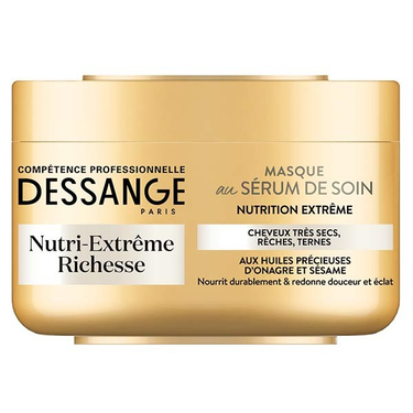 Formulé à base d’huiles d’onagre et de sésame, le Masque Nutri-Extrême Richesse Dessange répare les cheveux fragilisés. Ce soin intensif répond au besoin de nutrition et rend la brillance et l’éclat aux cheveux.