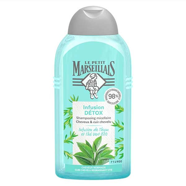 Le Petit Marseillais Shampoing Micellaire Infusion Détox 250 ml est un shampoing qui prend soin de votre cuir chevelu regraissant vite et de vos cheveux normaux.